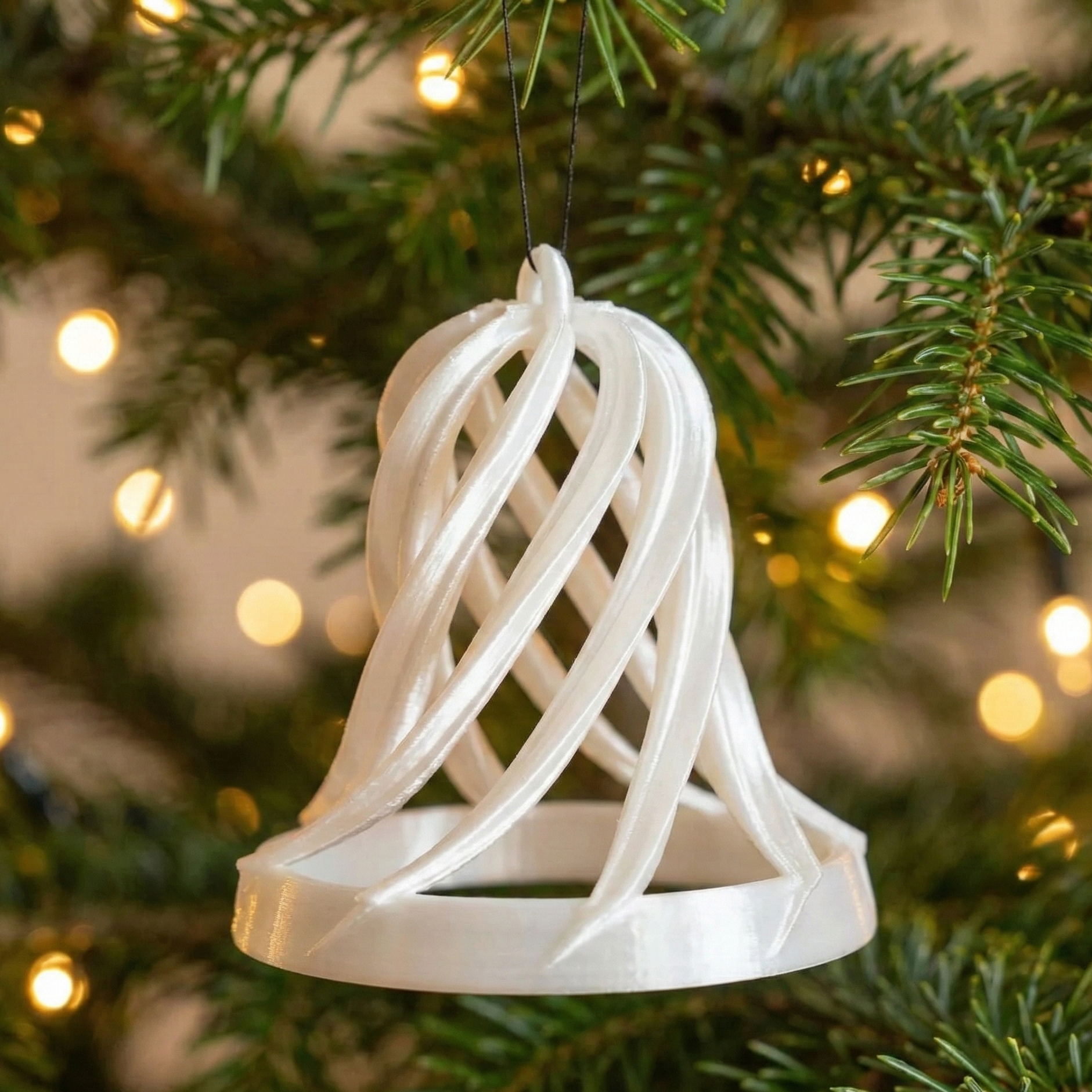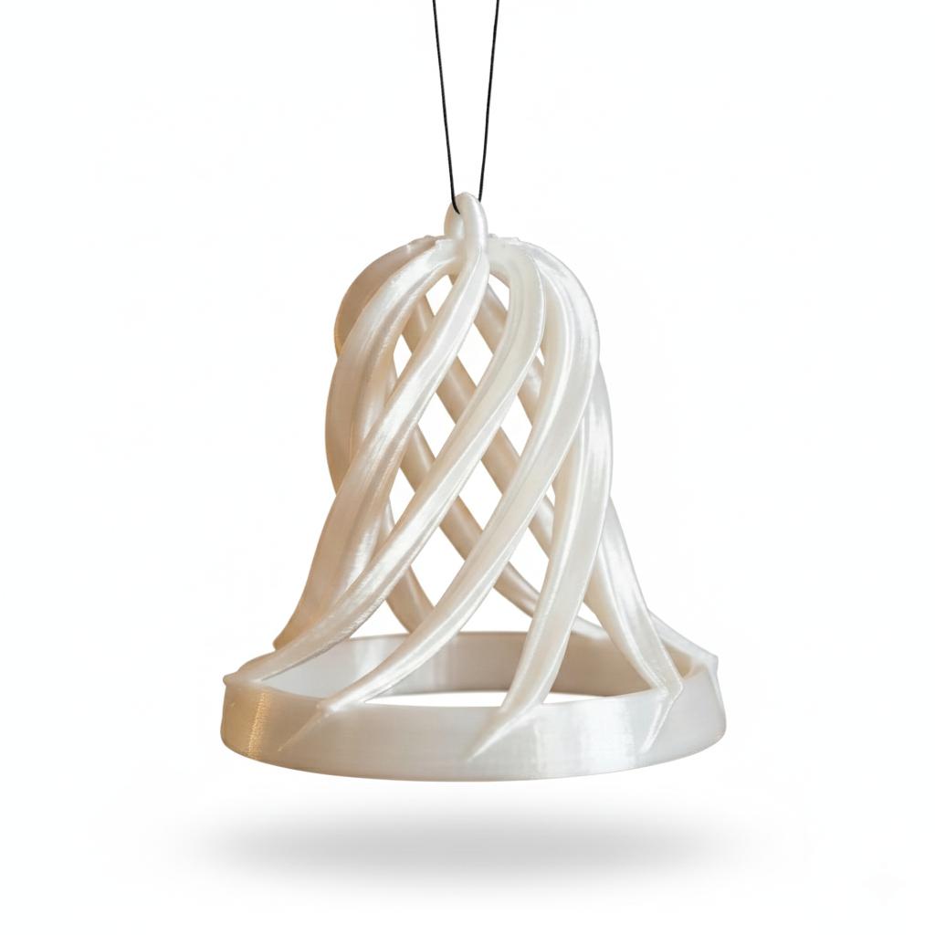 Izdelan s tehnologijo 3D tiska iz posebnega "Silk" PLA materiala, se ta okrasek ponaša s prefinjenim bisernim sijajem, ki posnema teksturo prave svile. Njegova spiralna oblika ustvarja igro senc in svetlobe, ki doda globino in moderni pridih vaši praznični dekoraciji.