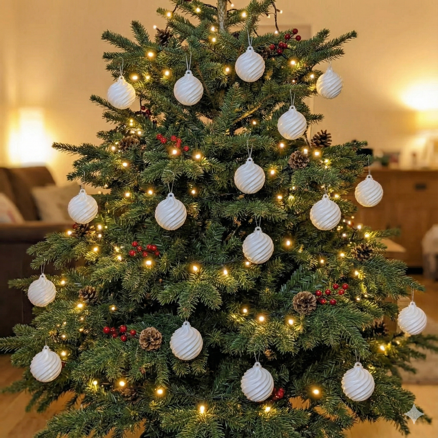 Ste naveličani vsako leto istih okraskov? Čas je za spremembo. Ta spiralni dizajn bo vaši smrekici vdahnil novo življenje in moderno eleganco. Čista bela barva in edinstvena tekstura ustvarita svežino, s katero bo drevesce letos končno zares izstopalo, namesto da se zlije s preteklostjo.